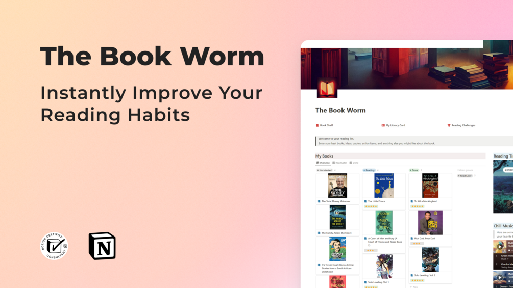The Book Worm is a Notion book tracker template that is designed to help you keep track of your reading.