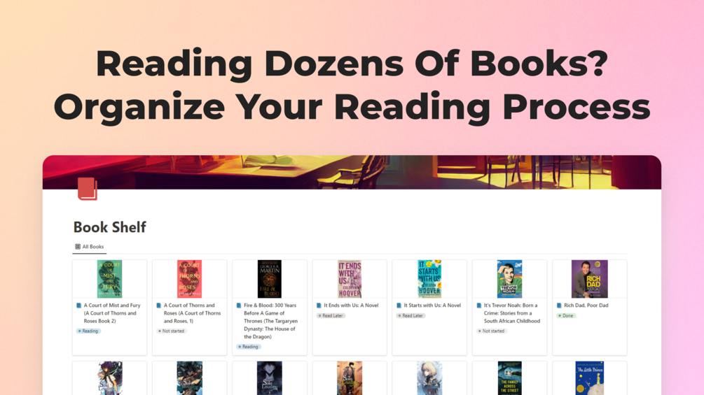 Stay organized and on top of your journey with the perfect Notion Bookshelf Template