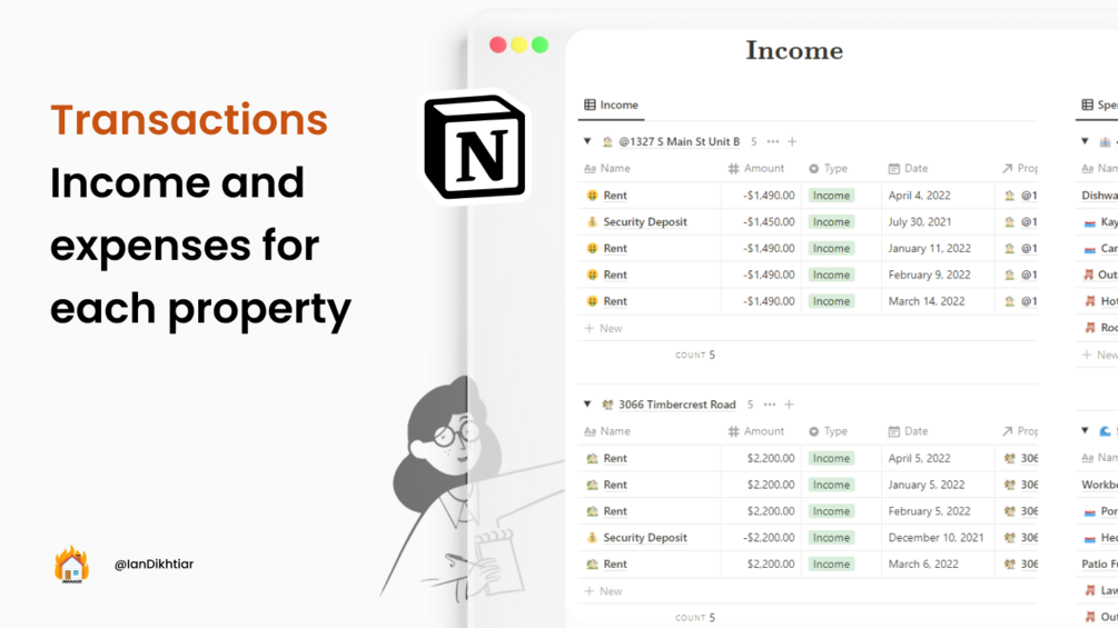 You can add your recurring bills like taxes, insurance, and property management fees to each of your properties in iManage!. This will help you keep an eye on the expenses and never miss a due date. The notion has great APIs that allow you to connect your favorite apps (e.g. through Zapier)