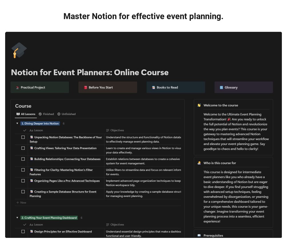Transform your event planning today! Enroll in the Notion for Event Planners course now!