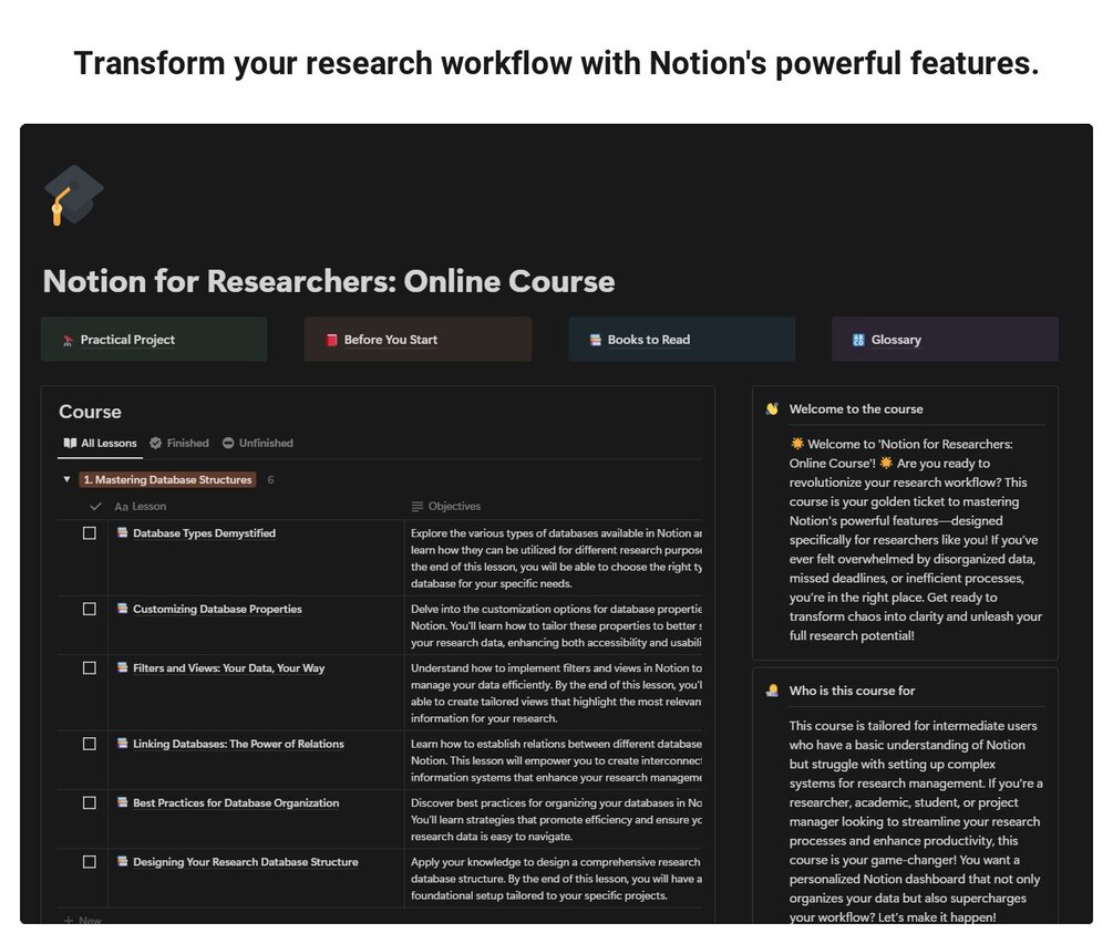 Join the Notion for Researchers course today and revolutionize your research workflow!
