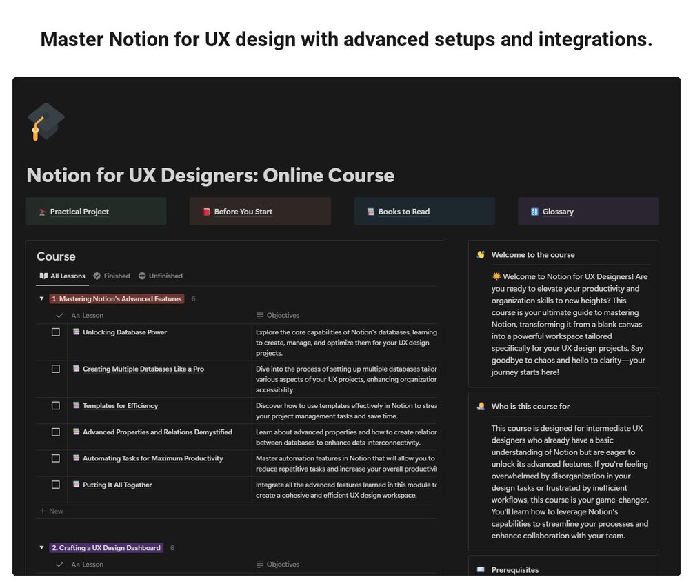 If you have a basic understanding of Notion but want to leverage its advanced features specifically for UX design, this course is for you.