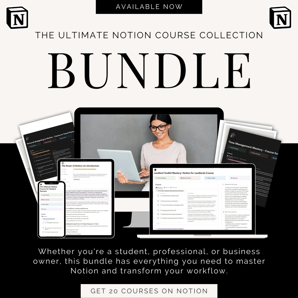This exclusive bundle includes 20 comprehensive courses designed to take you from a Notion novice to a productivity powerhouse. Whether you're a student, professional, or business owner, this bundle has everything you need to master Notion and transform your workflow.