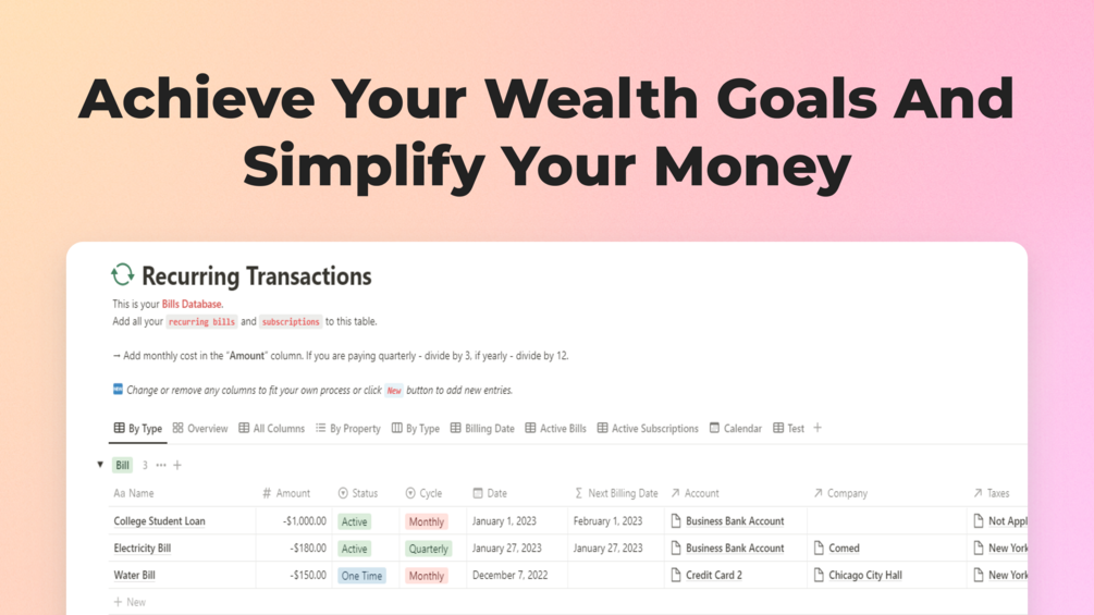 With the Wealth Management Notion Templates Bundle, you'll be able to: